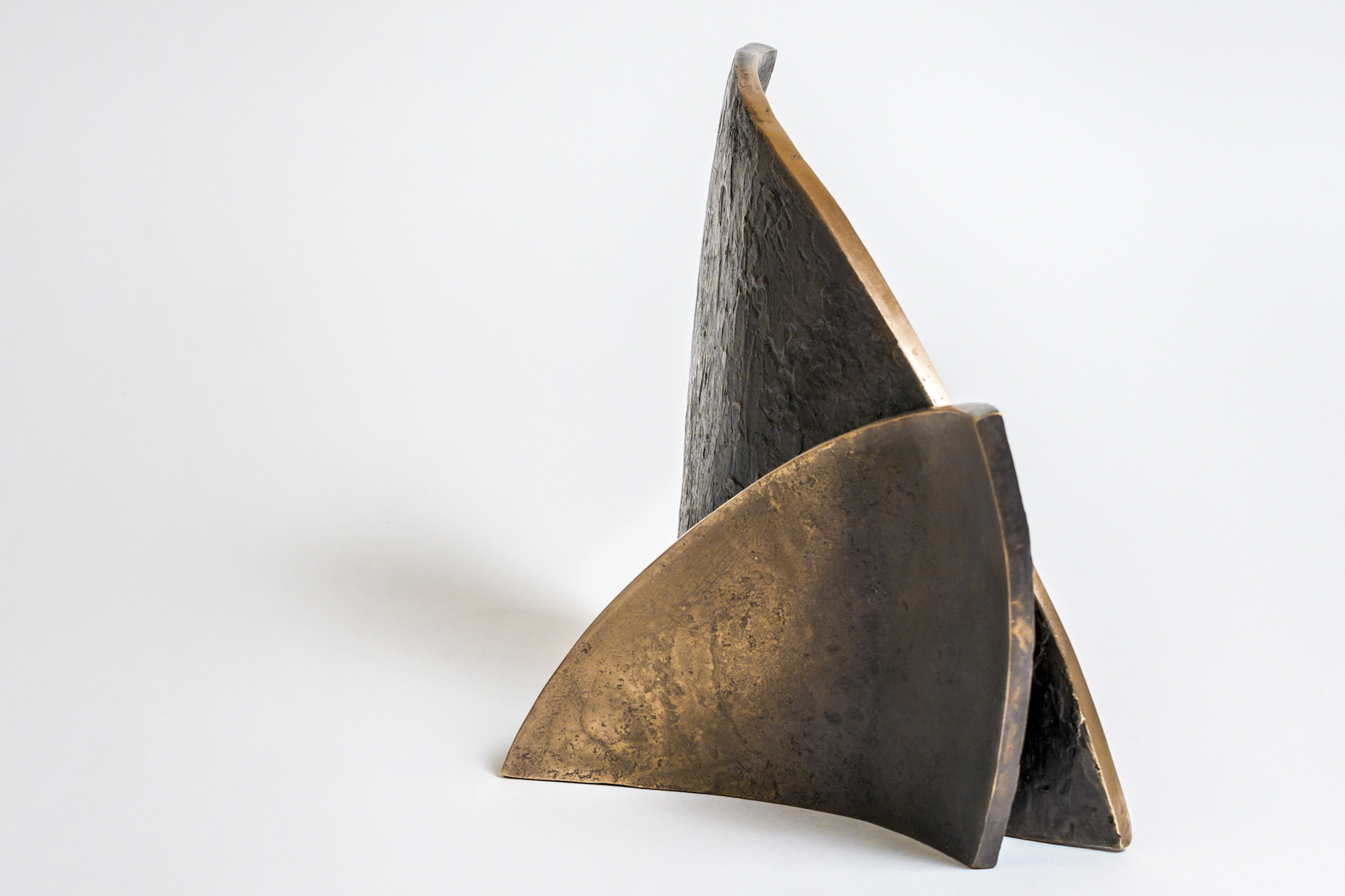 Rhythm is a working model for a larger sculpture. The work is an abstract sculptural expression in two curve metal forms inspired by the rhythm of movement of fish.